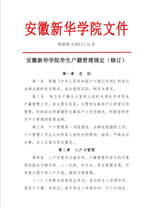 BB贝博艾弗森官方网站学生户籍管理规定(修订)