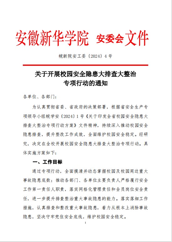 关于开展校园安全隐患大排查大整治专项行动的通知