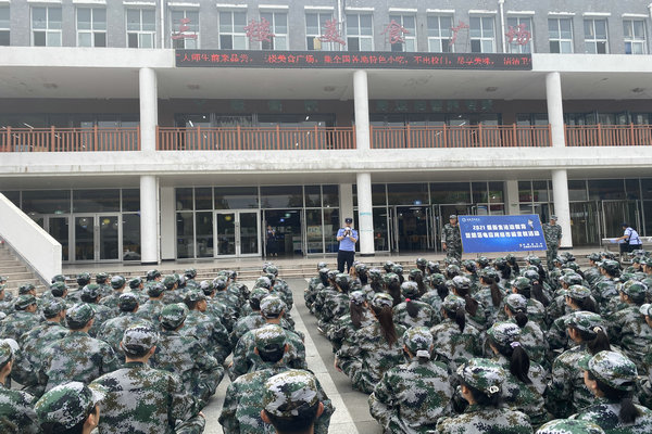 本网讯(通讯员:张炎 )为进一步提升2021级新生的法治意识和识骗防骗能力,9月6日下午、8日上午,学校保卫处、学生处联合高新派出所组织开展新生安全教育第一课。结合当前疫情防控情况,采用安全教育流动宣传点的方式,深入各军训场地,利用训练休息间隙开展法治教育暨防电诈宣教活动。活动由保卫处仇陶主持,高新派出所何驰所长宣讲。