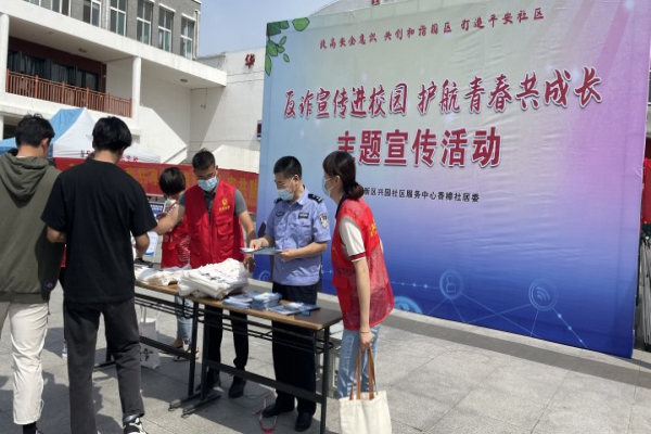 宣传中社区工作人员以及民警在广场醒目位置设立宣传点,通过发放宣传单页、面对面讲解等方式提醒来往师生不轻信陌生电话和信息,不向陌生人透漏自己及家人的身份信息、存款、银行账号等,不轻易点击可疑链接和告知陌生人短信验证码,如遇到可疑情况及时向辅导员、家人沟通或拨打报警电话,谨防上当受骗。