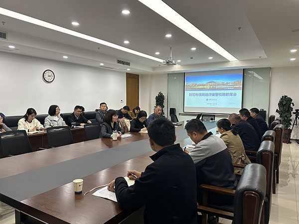 本网讯(通讯员:张大勇)针对双十一购物季电诈案件高发易发的特点,11月9日下午高新派出所、兴园中心、香樟社居委来校召开防范电诈联防联控会,高新派出所副所长王晋、兴园中心副书记代利红、平安办主任张扬、香樟社区书记汪家旺,校长助理邵玲及相关处室和二级学院行政负责人参加了会议。