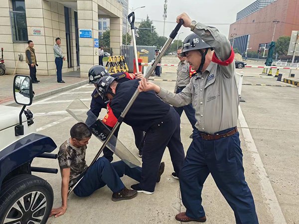 队员们针对不法分子的拍照、拉横幅、强闯校门、持械冲闯校园等情况进行了反复的演练。本次演练锻炼了大家的实战心理了应敌技巧,做到平时训练用时不慌。