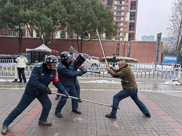 本网讯(通讯员:张大勇)12月19日上午,贝博官网联合高新派出所在贝博官网西门进行了反恐演习。