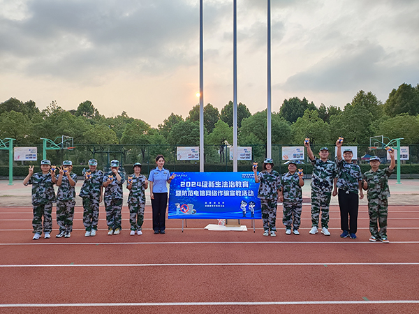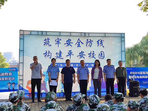 本网讯(通讯员:张大勇 摄影:李武军 侯帅)为进一步提升2024级新生的法治意识和识骗防骗能力,9月5日、6日,贝博官网保卫处、学生处联合高新派出所、兴园中心香樟社居委深入新生军训训练场,开展新生安全教育第一课——2024级新生法治教育暨防范电诈宣教活动。高新派出所居副所长董维标、民警程永兵,香樟社居委书记洪家汪,学生处处长芮萍参加了首场宣教活动,活动由保卫处副处长仇陶主持。