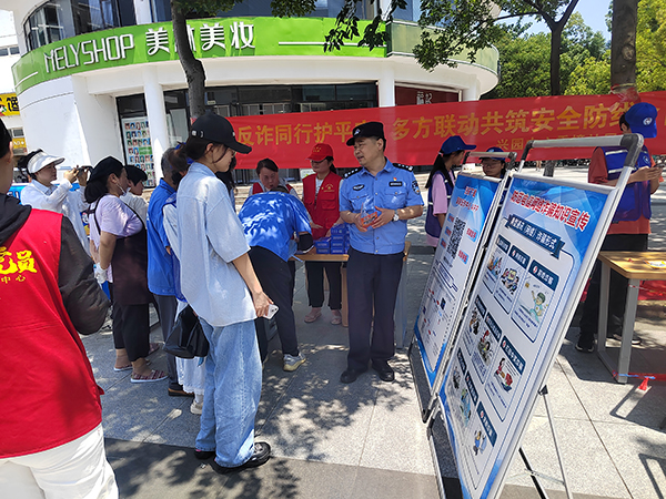 本网讯(通讯员:张大勇)为有效提升广大师生在“618”购物高峰期的识诈、防诈、反诈能力,筑牢校园安全防线。6月6日中午,贝博官网联合高新派出所、兴园中心、香樟社居委在翰林广场共同举办了一场“618”购物季防范电信网络诈骗专题宣传活动。活动共吸引800余名师生参与,现场气氛热烈,成效显著。
