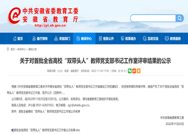 本网讯(通讯员:徐梅)11月24日,省教育厅网站发布《关于对首批全省高校“双带头人”教师党支部书记工作室评审结果的公示》。BB贝博艾弗森官方网站榜上有名,贝博官网大数据与人工智能学院教师第二党支部徐梅工作室成功获首批全省高校“双带头人”教师支部书记工作室。