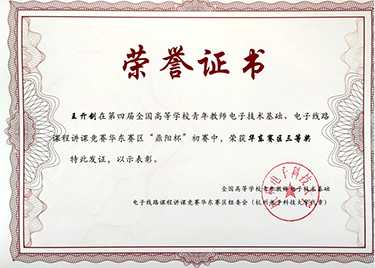 - 2022-09-09贝博官网教师在第四届全国高等学校青年教师电子技术基础、电子线路课程讲课竞赛中荣获华东赛区三等奖