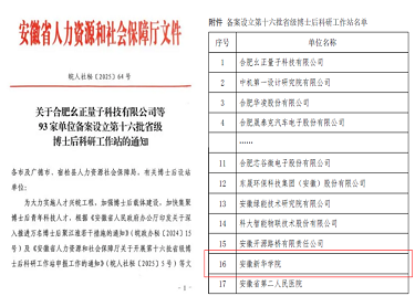 - 2025-04-12贝博官网获批安徽省博士后科研工作站