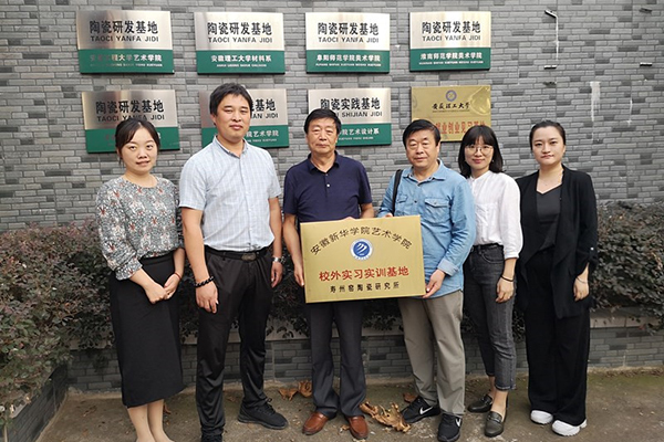 本网讯(通讯员:龚毅)为进一步拓展学生实习平台,更好地开展应用型人才培养。9月29日,贝博官网艺术学院执行院长许存福、院长江河、教学秘书王静、青年骨干教师郝静雅、龚毅等一行5人专程来到淮南寿州窑陶瓷研究所,进行校外实习实训基地协议签定和挂牌。