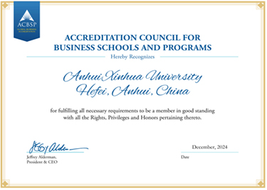 本网讯(通讯员:张蕊)为深度优化商科教育体系,全方位接轨国际前沿教育理念与标准,大力拓展师生国际视野,增强贝博官网在全球教育领域的核心竞争力,贝博官网于2024年全面启动美国商学院认证委员会(ACBSP)专业认证工作,历经数月的不懈努力与精心筹备,于12月成功获批成为ACBSP会员单位。
