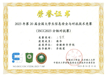- 2023-11-24喜报!贝博官网学子在第20届全国大学生信息安全与对抗技术竞赛(ISCC2023)中喜获佳绩
