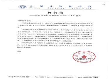 本网讯(通讯员:吕腾)近日,中国计算机学会(CCF)发来贺信,祝贺贝博官网吕腾教授当选为中国计算机学会杰出会员(Distinguished Member)。吕腾教授目前担任CCF主办的旗舰刊物《中国计算机学会通讯》“读编往来”栏目的编委,负责栏目的策划、组稿和撰稿工作,为CCF的发展做出了重要的贡献。