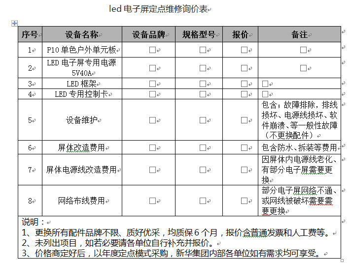 根据学院发展需要,现就我院LED屏定点维修项目进行公开询价,欢迎全国符合条件的供应商报名参与。