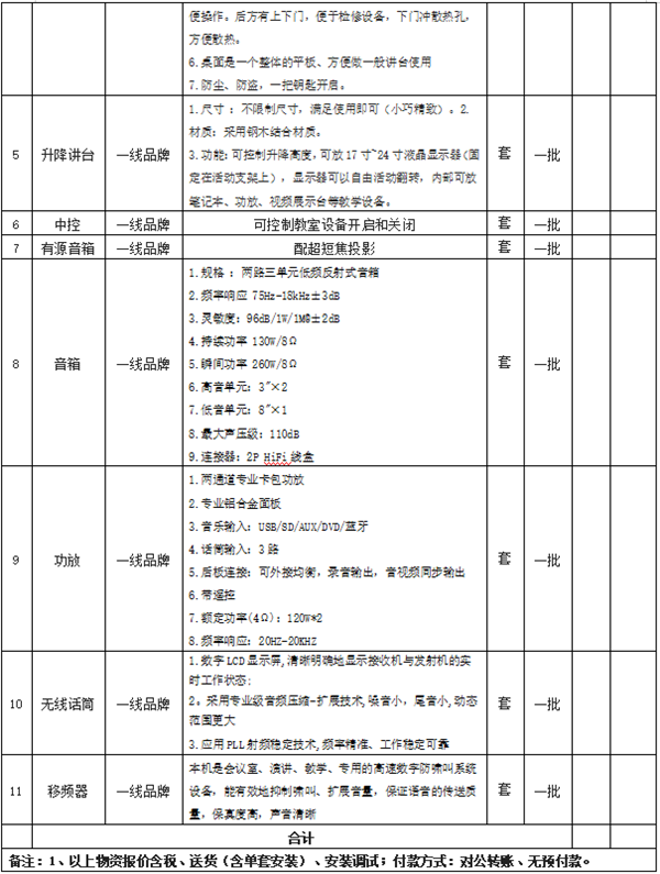 2.履行合同所需的任何项目若未有明确加在所列价款中,该部分有关费用应视作包括在投标报价之内(如运送、设计、调试安装等);