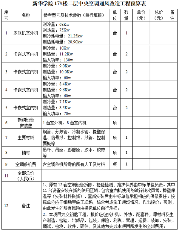 因单位需求,现对安徽新华集团旗下安徽华园教育科技有限公司所需中央空调改造项目进行招标询价采购,欢迎符合本项目条件的合格投标人参加投标。