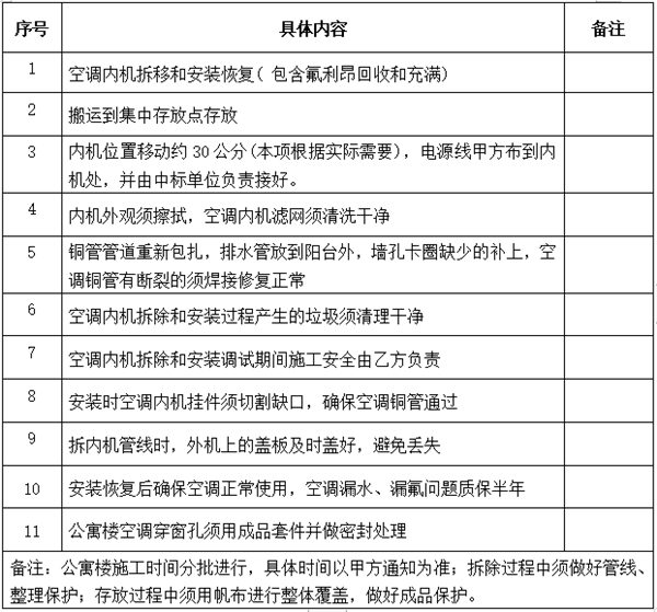 二、大批量空调内机迁移和安装恢复项目的具体内容要求