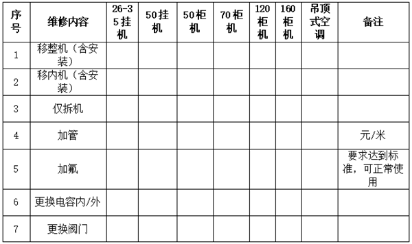 2.投标单位须具备中国制冷空调设备维修安装企业资质;