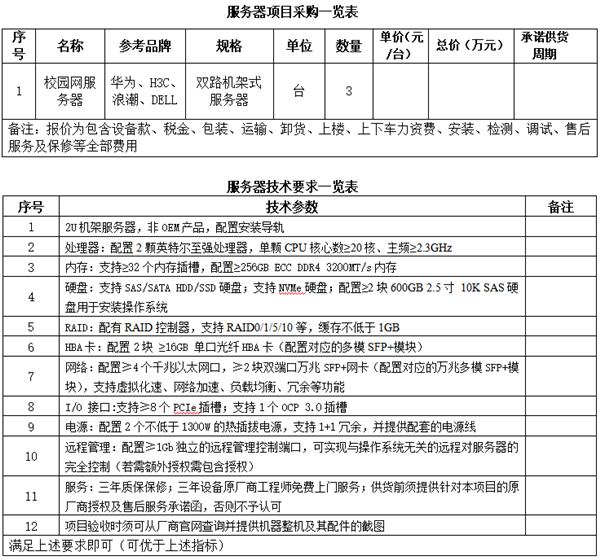 因单位建设需要,现对安徽新华集团旗下院校BB贝博艾弗森官方网站的校园服务器项目进行公开询价采购,欢迎全国范围内符合条件的供应商报名参与。