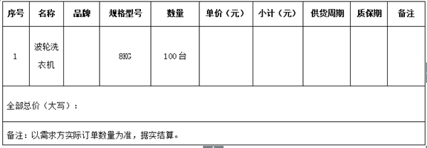 BB贝博艾弗森官方网站洗衣机采购项目询价公告