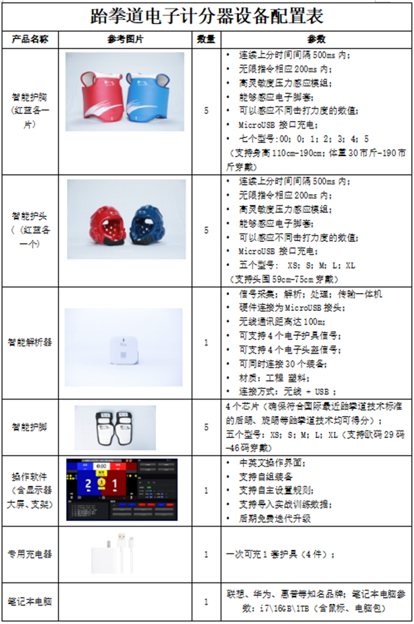 4.项目概况: 根据采购需求,对BB贝博艾弗森官方网站跆拳道电子计分器项目进行询价采购,跆拳道电子计分器配置详见项目服务需求。
