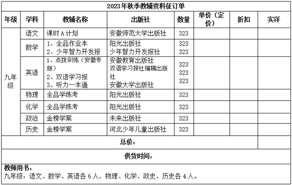 5.教辅数量为计划数量,最终据实结算,需能根据实际所需退货或补货。
