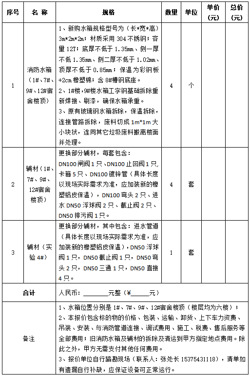 BB贝博艾弗森官方网站消防水箱采购项目询价公告