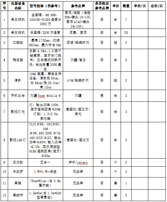 2.项目名称:摄影器材等设备采购项目
