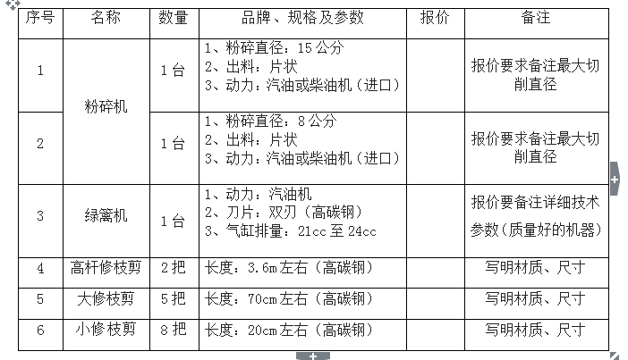 BB贝博艾弗森官方网站园林机械设备询价公告
