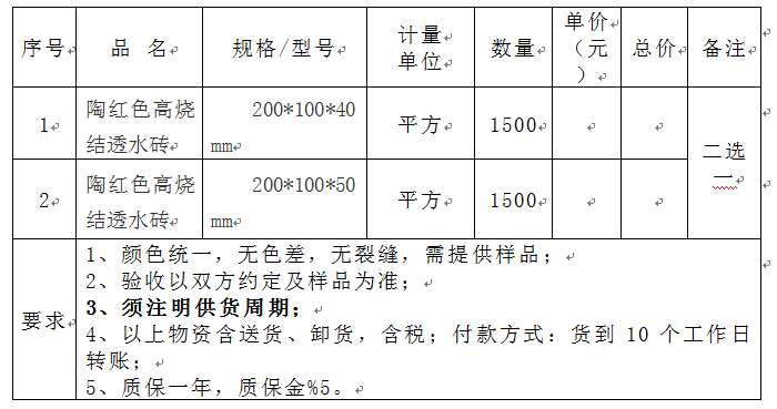 BB贝博艾弗森官方网站陶红色高烧结透水砖招标公告