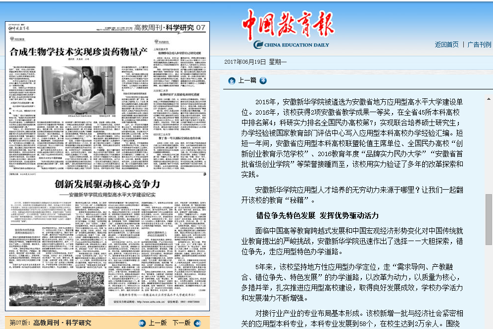 6月19日,《中国教育报》推出题为《创新发展驱动核心竞争力——BB贝博艾弗森官方网站应用型高水平大学建设纪实》一文,全面反映贝博官网地方应用型高水平大学建设的经验与成果、应用型人才培养模式的创新与实践。现将原文转载如下。