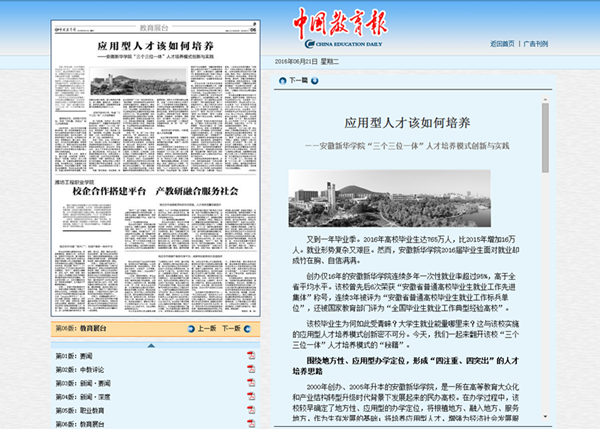 6月21日,《中国教育报》推出题为《应用型人才该如何培养——BB贝博艾弗森官方网站“三个三位一体”人才培养模式创新与实践》一文,全面反映贝博官网应用型人才培养模式的创新、实践及取得的成效。现将原文转载如下。