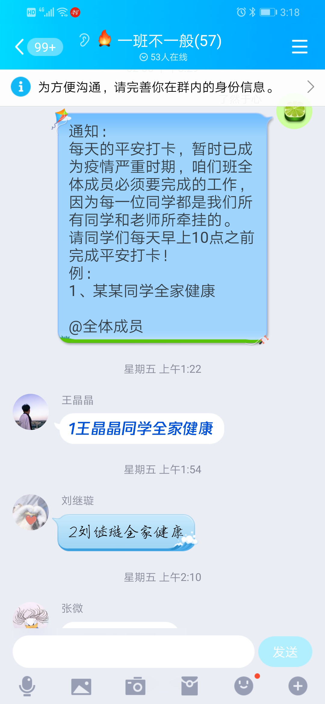 辅导员们虽然停下了出门的脚步,但没有停下对学生们的牵挂,在第一时间将学校有关疫情防控工作的文件、材料等通过班级群传达给学生,带领班干部收集整理官方信息,向学生讲解相关预防措施,严格落实疫情防控工作,做好跟踪排查与统计,密切掌握学生及家庭情况,随时收集整理学生动态,并积极传达教育学生掌握疫情防控知识。在积极做好延迟开学的相关工作安排,也提醒学生们安排好在家相关学习事宜及网络平台学习相关课程,做到开学推迟、授课及时,停课不停学。
