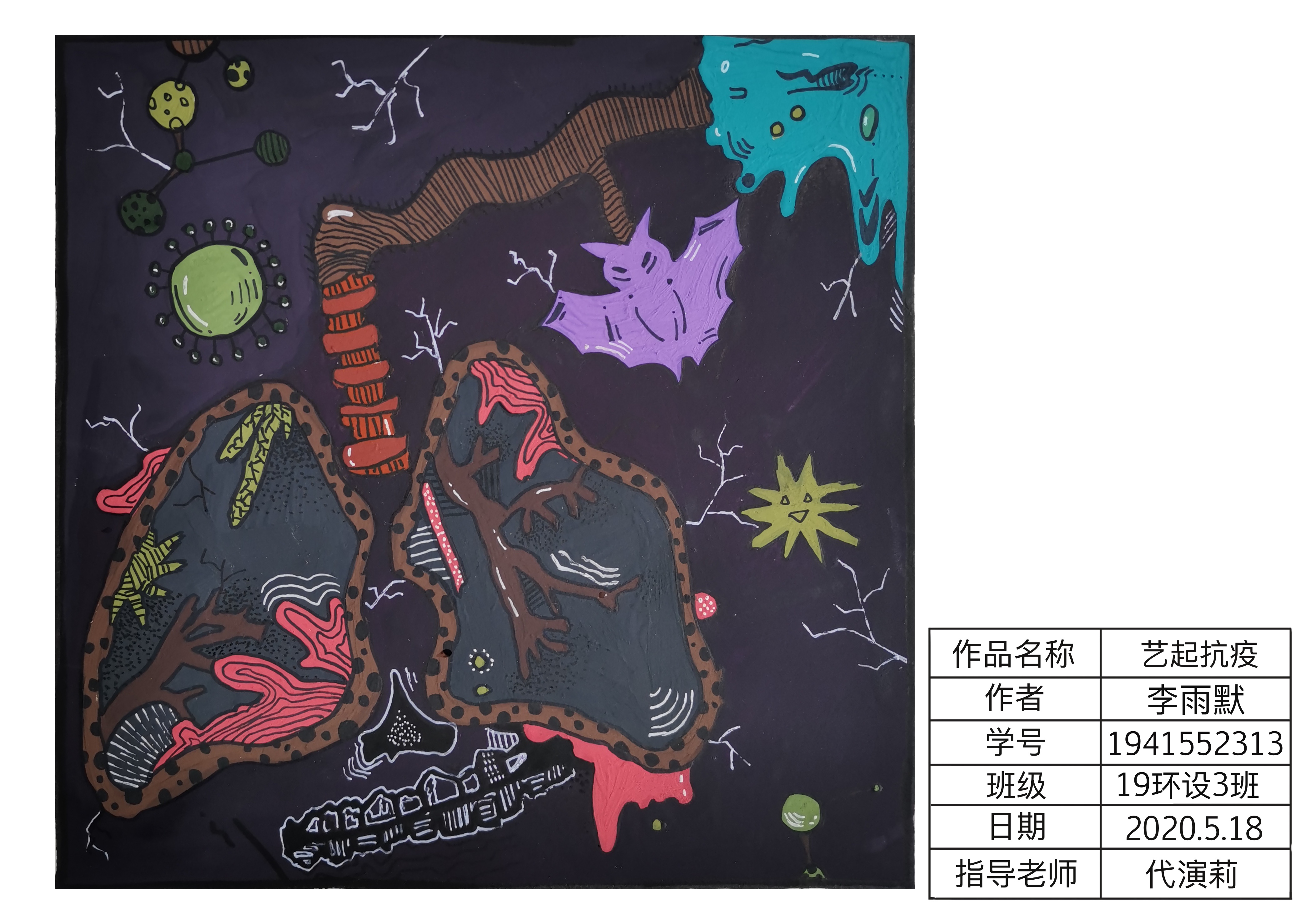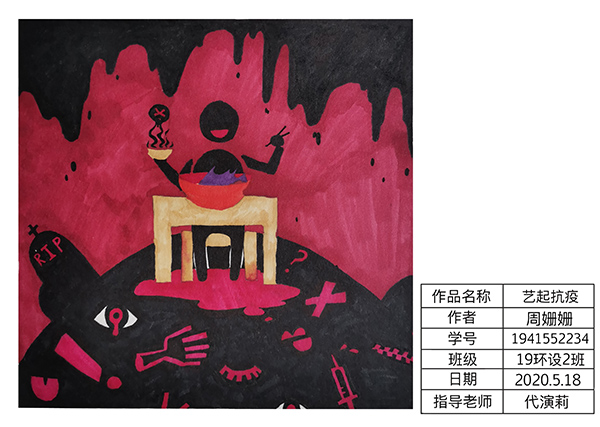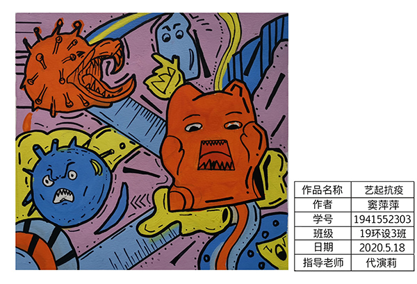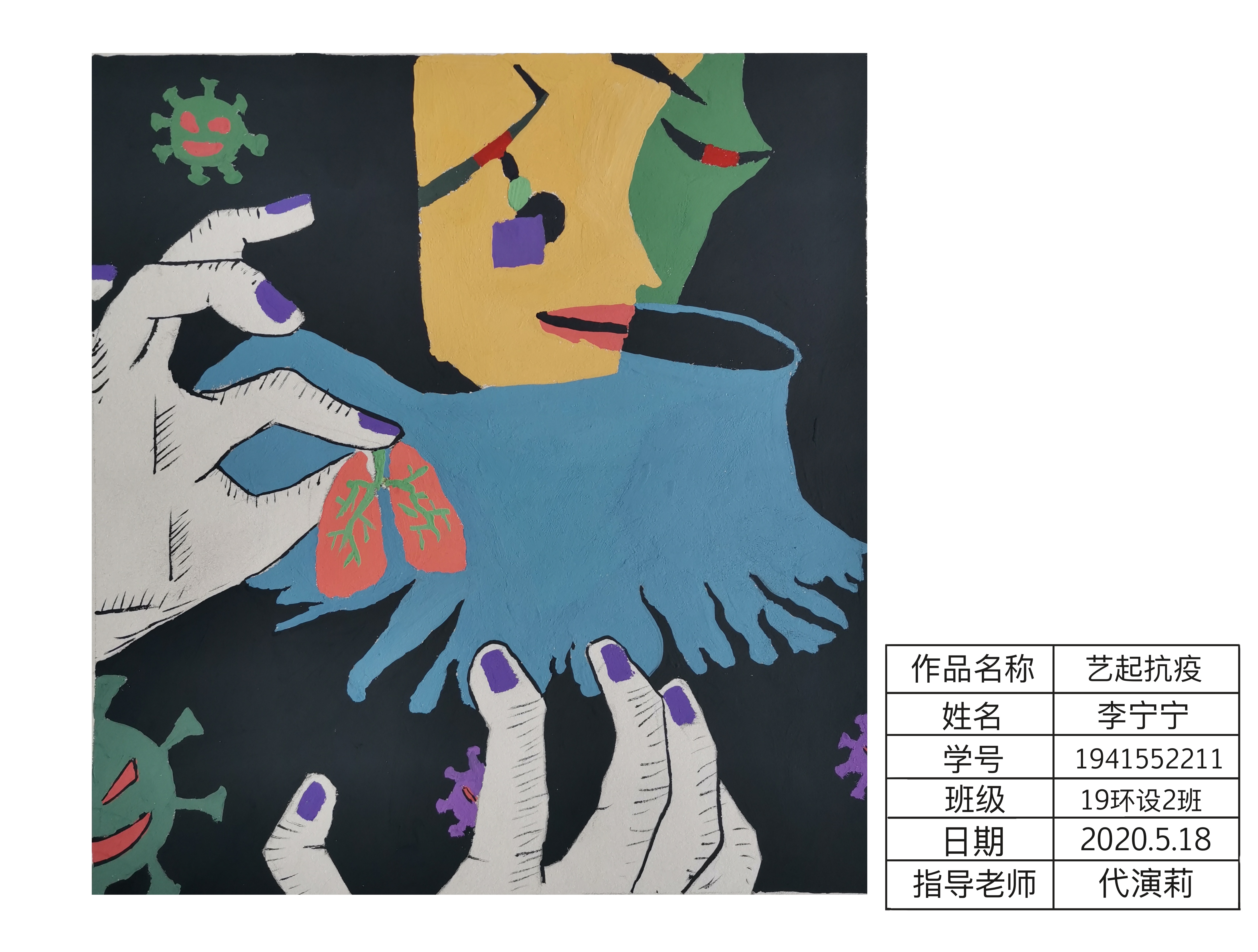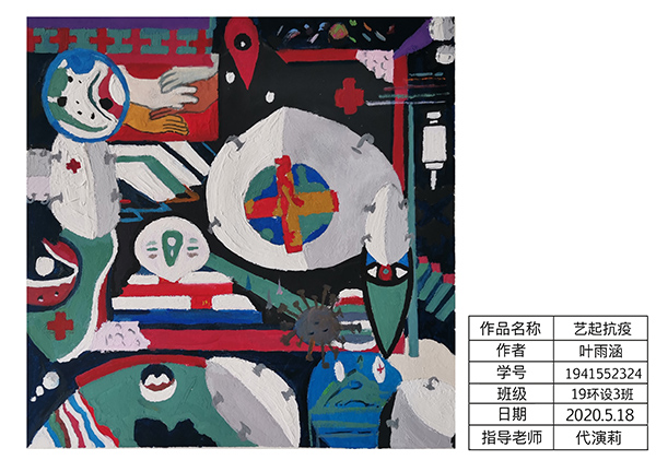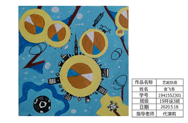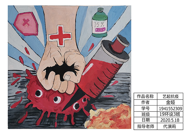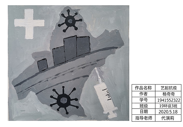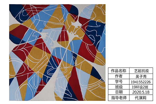 此次作品展是本学期《色彩构成》课程线上教学内容的一次总结与汇报,以《色彩构成》的专业知识为基础,以与新型冠状病毒疫情做斗争为题材,将人们从开始的恐惧、悲伤到众志成城后的冷静,以及逆行者们的勇敢、坚强到战胜病毒的喜悦、胜利等这一系列的心理活动,用丰富的色彩组合进行生动再现。