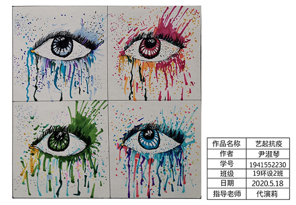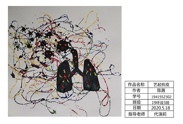 “青山不墨千秋画,绿水无弦万古情”,同学们将青年大学生对和谐社会的向往和对生命安全的祈盼,汇成绚烂的色彩语言,进而汇果成展。通过展览,不仅进一步巩固了学生的色彩综合运用能力,也加深了其对疫情相关知识的了解,普及了学生们注重加强锻炼、增强体质,注意卫生的生活常识。同时,本次课程展出的五十余件抗疫作品,以鲜明的主题渲染和强烈的视觉冲击吸引了许多过往师生的关注,形成了良好的防疫宣传作用。