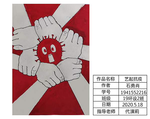 展览活动不仅是学生课程的一次实践,也是学生以实际行动参与抗疫的具体举措。艺术学院通过组织系列展演活动,不仅进一步强化了教学管理与课程考核的效果,也进一步提升了大学生关爱他人、关注社会意识的养成,进一步促进了学院“以展促学、以展促教、以展促改”特色教学这一良好氛围的形成。