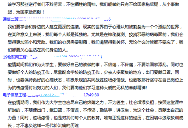 阅读可以让我们更坚强,学院在5月1日—20日发起线上共同阅读同济大学附属东方医院主编,为疫情中的大众提供心理援助的《抗疫.安心--大疫心理自助救援全民读本》和湘雅二医院主编《新型冠状病毒肺炎大众防护与心理疏导》两本书籍,通过班级群推送,组织同学开展两本抗疫读本讨论活动,鼓励班级同学留下一句话的读后感。