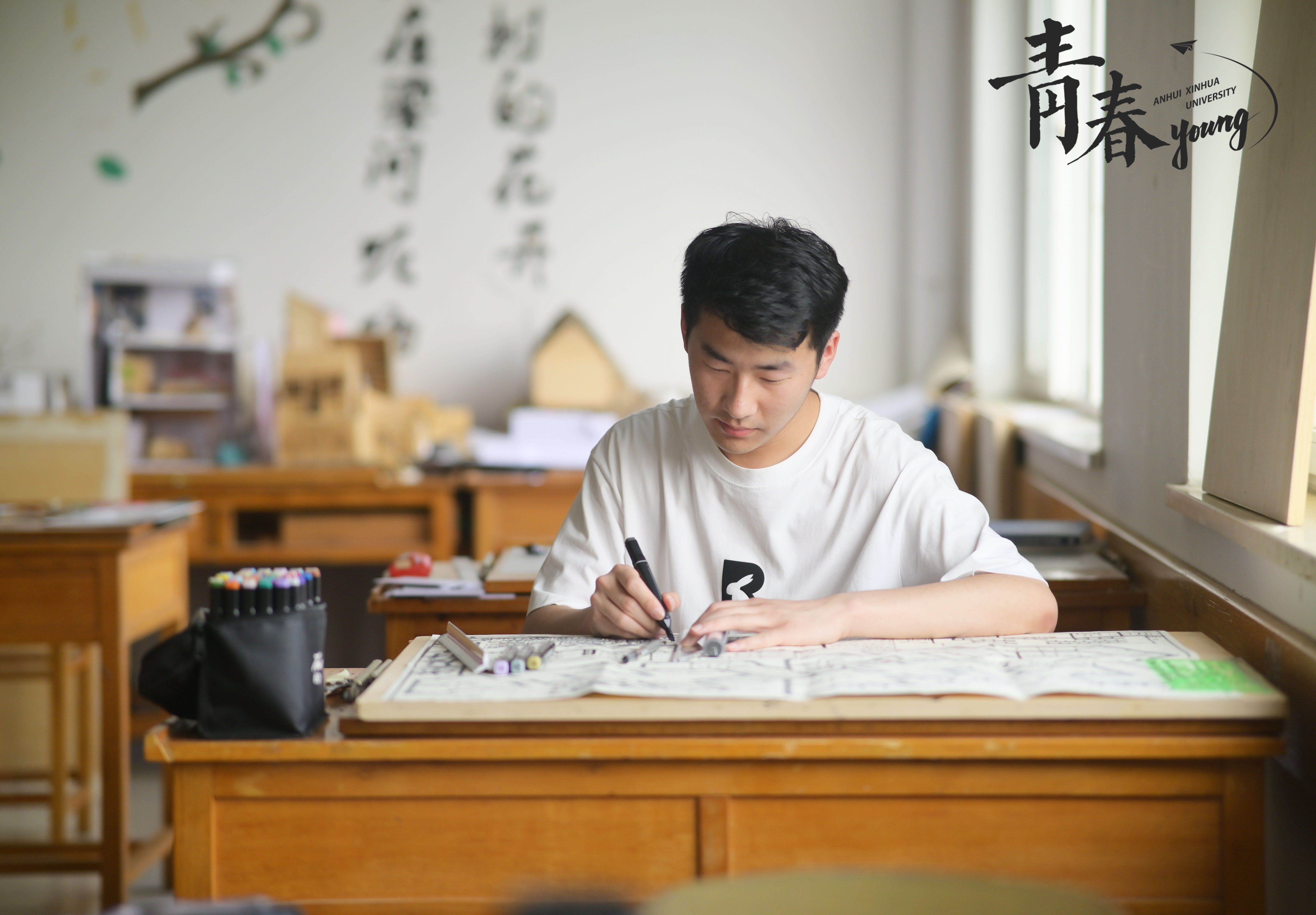 尚权似乎是个很矛盾的人:自认普通,却拿下国奖;自认在人群中喜欢倾听、不喜欢发言,却总是承担领导协调的角色;自认悲观,却也常被老师和同学评价为“靠谱、踏实”。出乎我们意料的是,以“想象力匮乏,性格古板”自居,却收获了诸多设计创新类竞赛奖项:第二届安徽省乡村振兴创新创业大赛三等奖、第十届“蓝图杯”建筑制图大赛二等奖、第十届“导航杯”模型设计制作大赛三等奖……