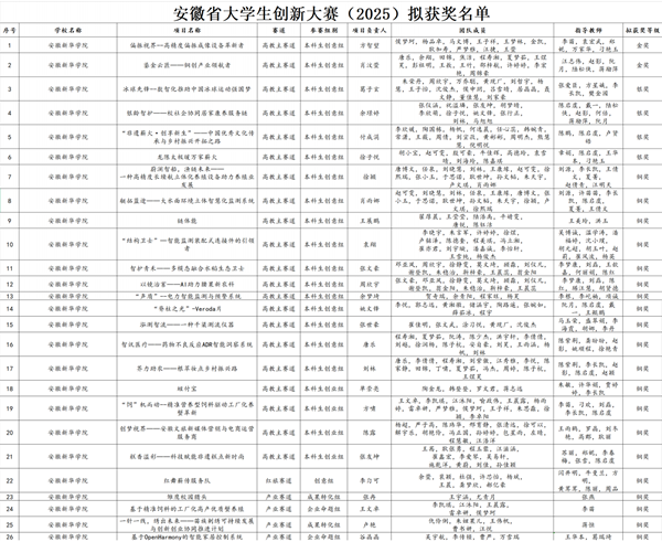 喜报!贝博官网师生共获安徽省大学生创新大赛(2025)金银铜奖26项