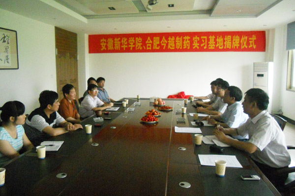 副院长马凤余、药学院院长张国升,合肥今越制药有限公司全体领导参加了实习基地合作协议签约及挂牌仪式。仪式上,双方代表就大学生就业实习基地的建立及人才培养模式等进行了深入地交流。张国升教授介绍了药学院在科学研究、人才培养等方面所取得的成绩,希望校企双方真诚合作,共谋发展。以实习基地为纽带,加强药学院与企业之间的交流与协作,共同努力,把该基地建设成为示范性实习基地。