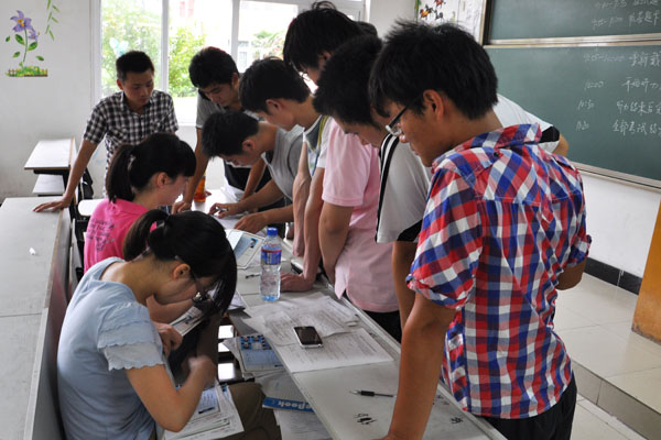 7月2日、5日分别是电子通信工程学院专科生和本科生离校,办公现场,老师们耐心细致的给每一个毕业生讲解办理程序和注意事项,同学们自发的排着长队,安静的等候老师给自己办理手续;留言墙上,同学们纷纷挥洒笔墨书写着各自的心情和对母校的祝福。