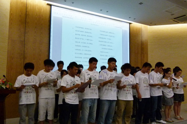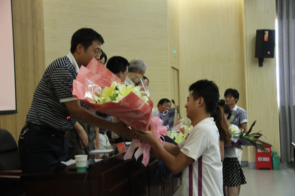 与以往不同,在本科毕业典礼结束后,信息工程学院的毕业生代表带来了歌曲串烧,在《睡在我上铺的兄弟》、《那些花儿》、《再见》、《同桌的你》、《祝你一路顺风》的歌声中,在场同学共同回忆了大学四年生活的点滴。2008级信息与计算科学专业的同学穿上印有每位同学笑脸的文化衫共同唱起了经过改编的歌曲《老师,我爱你》,当同学们唱到“老师我爱你,我们即将分离。信工院的孩子还要你教育。老师我爱你,你一定要注意身体,祝福你们永远年轻。”时,感动了在场的所有老师。最后,师生共同朗诵《忆往昔,彼四年,在明天》,在一句“再见,再会,让我们相聚在下一个明天”中,将欢送会推向高潮,毕业生代表向老师送上鲜花,掌声中画上圆满的句号。