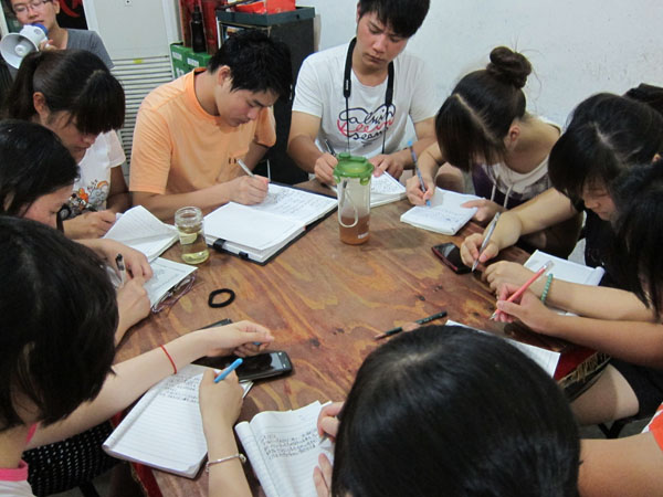 这是一支纪律严明的队伍,每天规律的作息时间:早六点起床晚十点睡觉;每天晚八点一天工作总结讨论。每天秩序井然的进餐、快速高效的集合整队等等。