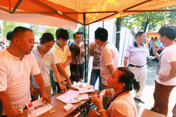 记者在现场看到,各高校咨询台前都挤满了考生和家长。他们或焦急地询问学校招生人数,或埋头翻阅学校往年录取分数线材料,或“揪住”招生老师询问填报专业情况。各高校的招生老师也正认真、细致、耐心地为前来咨询的每一位学生和家长答疑解惑、出谋划策。不少考生一人参会,全家出动,家长们都不甘“当配角”,来前做好充分准备,在现场一个问题接一个问题地与各高校老师细细交流。