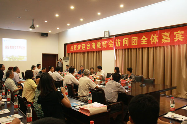 本网讯(记者 代玲玲,摄影 代玲玲)8月8日下午,台北市教师会代表团一行25人访问BB贝博艾弗森官方网站,全国台联、省台联、合肥市委相关领导陪同访问。BB贝博艾弗森官方网站副院长杨世国、马凤余会同办公室、教务处、团委、国学研究院、国际教育学院等单位相关负责同志会见来宾。