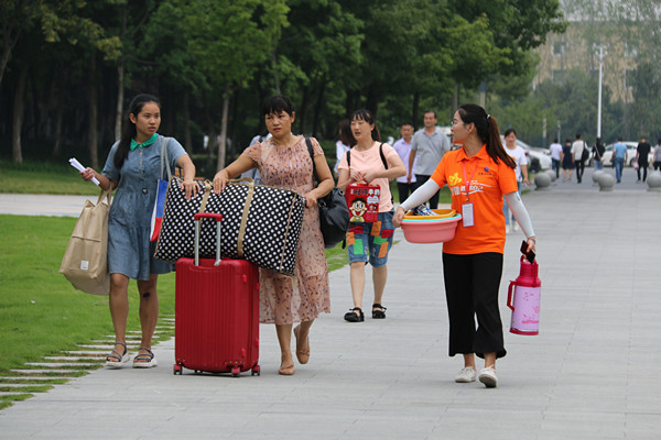 8月31日,正式报到的第一天。参与迎新的志愿者们不停地穿梭在教学楼与宿舍之间,引导新生报到,帮助新生搬运行李,介绍学校概况;“活力橙”们的志愿服务构成了华园里最靓丽的一道风景线。他们来自不同的学院,不同的社团组织,但他们都拥有着一个共同的名字——志愿者。