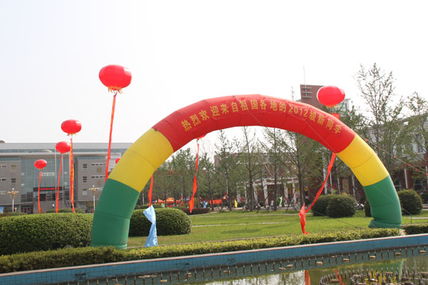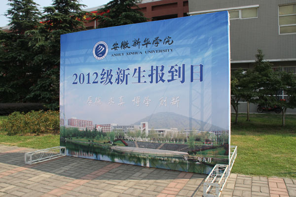 学校今年安置了一面留影墙,供新生和家长合影留念