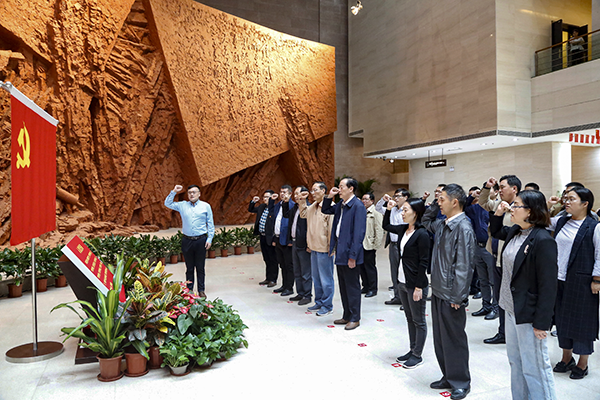 在渡江战役纪念馆一楼大厅,新华集团副总裁,BB贝博艾弗森官方网站党委副书记王孝武带领全体学员重温入党誓词,用铿锵有力、掷地有声的誓言表达不忘初心、砥砺担当的坚定信念。宣誓仪式结束后,全体学员在讲解员的带领下参观了渡江战役陈列展。