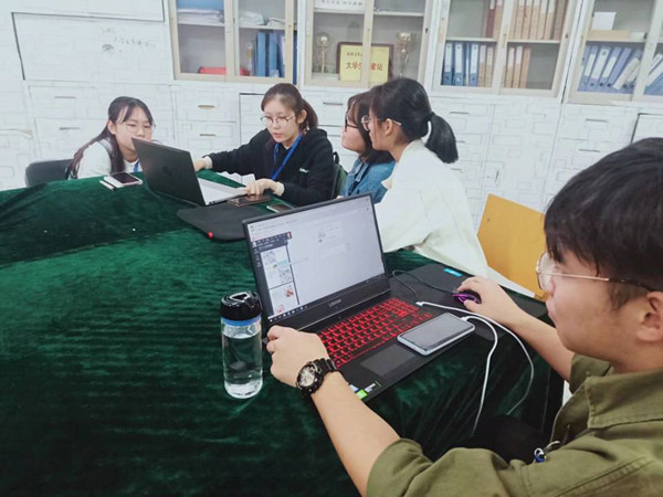 还有一群人,面对着电脑屏幕、敲击着他们手中的键盘,他们就是新媒体中心的小伙伴们,主要负责每天的学校官方微信推文。他们通过编辑微信推文,为不能在现场观看的老师、家长、学生提供最新鲜的运动会赛况。“推文的编辑虽然很繁琐,可是当我看到文章的阅读量在持续增长时,我就觉得所做的一切都是值得的。”新媒体中心王光阳说道。