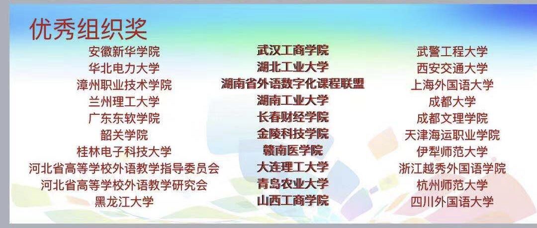 据悉,本次大赛由中国高等教育学会与高等教育出版社联合主办,共有来自28个省、市、自治区的1714件作品参赛。经过专家评委会的评审,贝博官网教师及团队的4件作品入选并获奖,取得了优异的成绩。贝博官网外国语学院领导一直高度重视该赛事的组织工作,鼓励一线教师积极参与微课大赛,近年来连获佳绩,受到了主办方的高度肯定,授予贝博官网“优秀组织奖”