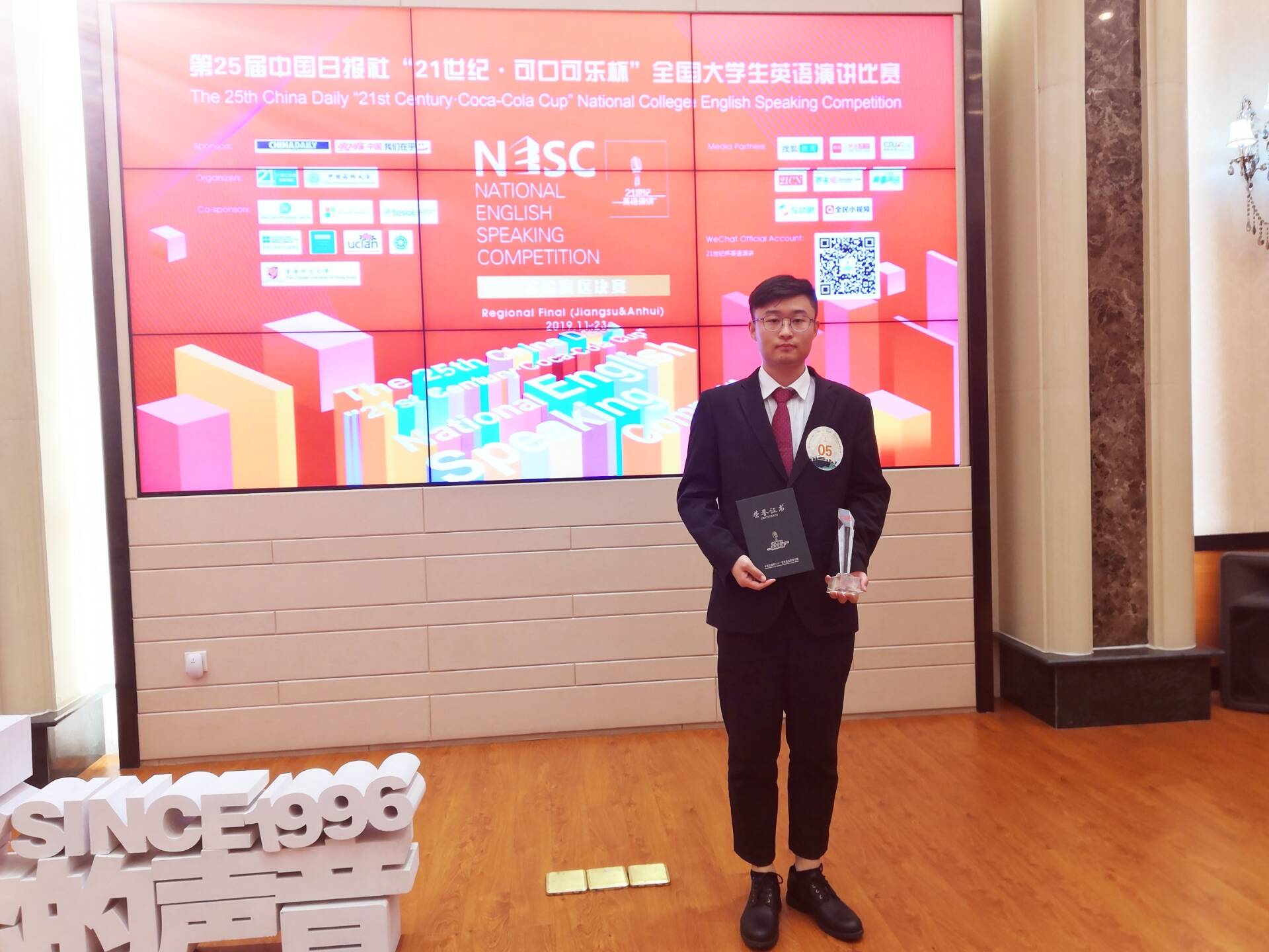 本网讯(通讯员:王喆)11月22-23日,由中国日报社与可口可乐中国联合举办、二十一世纪英语教育传媒承办的第25届中国日报社“21世纪杯全国大学生英语演讲大赛”安徽地区总决赛在南京中国药科大学举办,BB贝博艾弗森官方网站选手李航同学,在学校外国语学院教师王喆的指导下,获得安徽省总决赛季军,并成功入围在京举办的全国半决赛。安徽省前三名分别是安徽师范大学,安徽大学、BB贝博艾弗森官方网站。